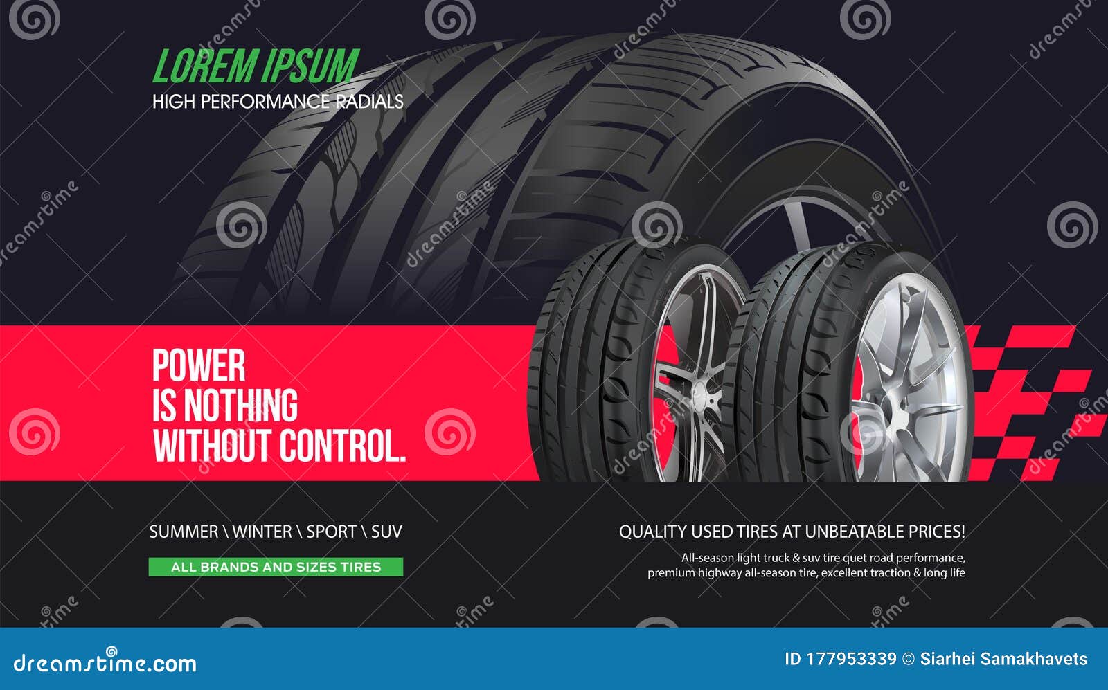 Tire Shop Vector Banner of Car Wheel Tyres with Tread Track Price Offer